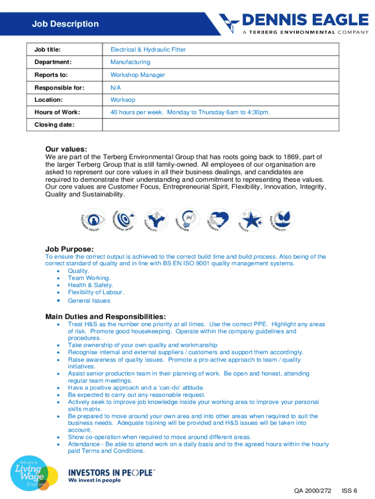 Job Description Job title:Electrical & Hydraulic FitterDepartment:ManufacturingReports to:Workshop ManagerResponsible for:N/Location:WorksopHours of Work:40 hours per week. Monday to Thursday 6am