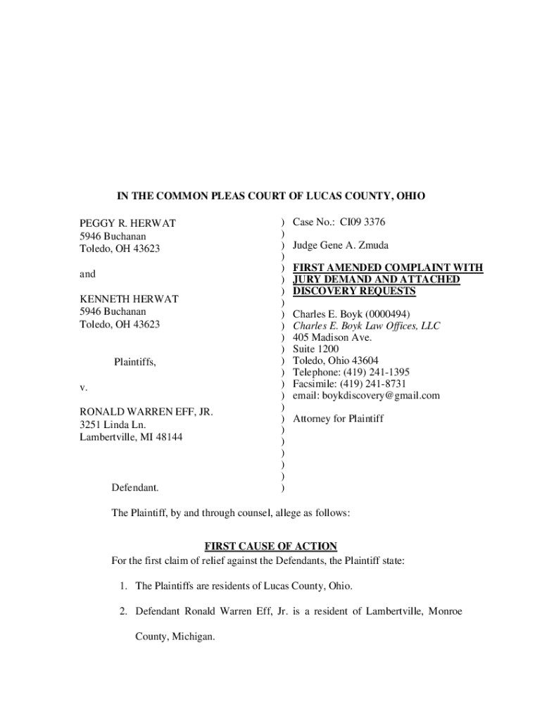 IN THE COMMON PLEAS COURT OF LUCAS COUNTY, OHIO