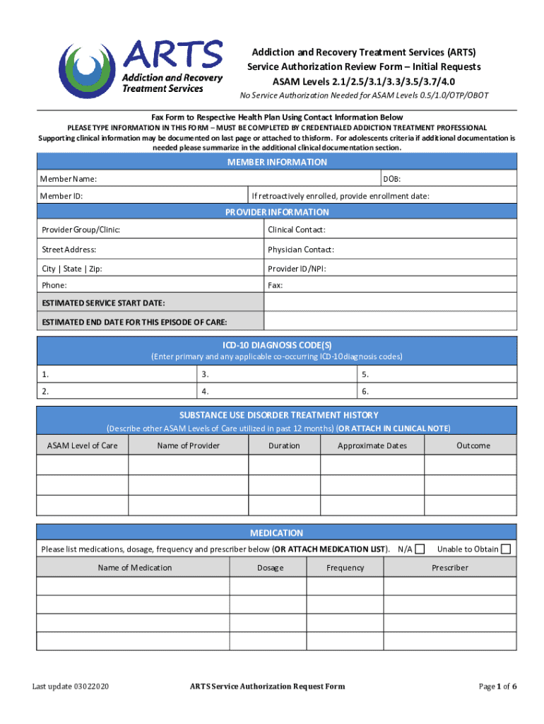 Service Authorization Review Form Initial Requests