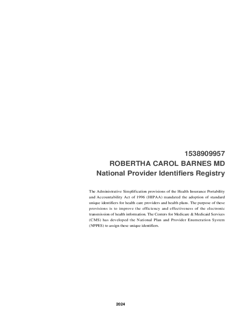 Get the free 1538909957 ROBERTHA CAROL BARNES MD National Provider ...