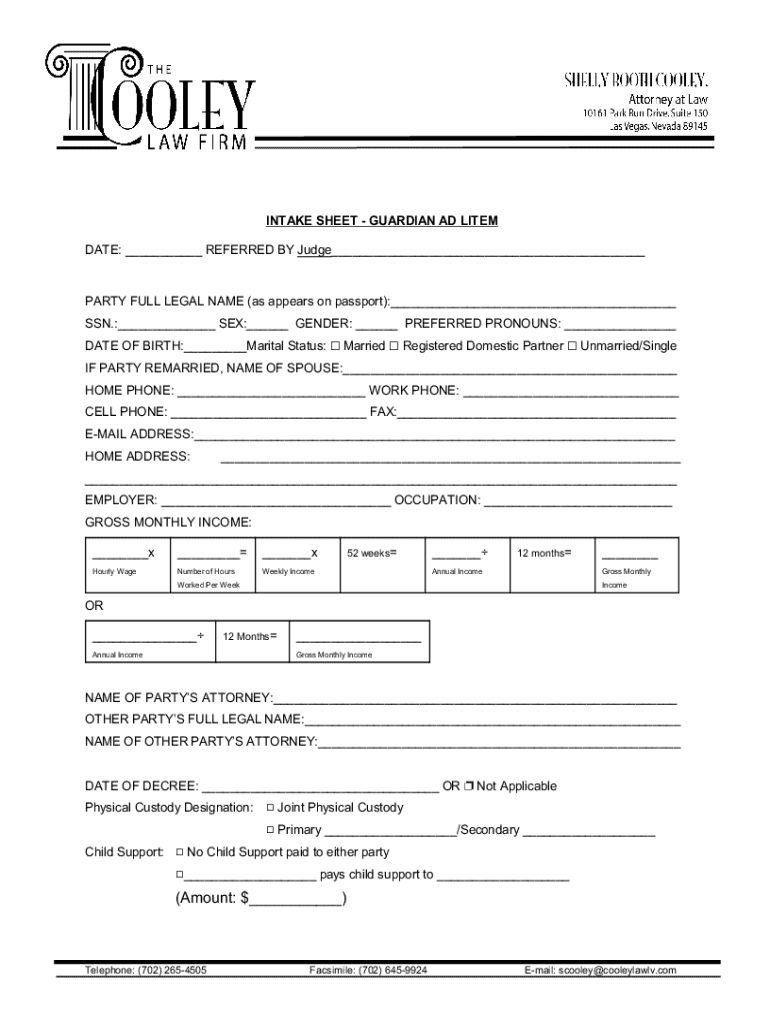 INTAKE SHEET GUARDIAN ADL ITEM