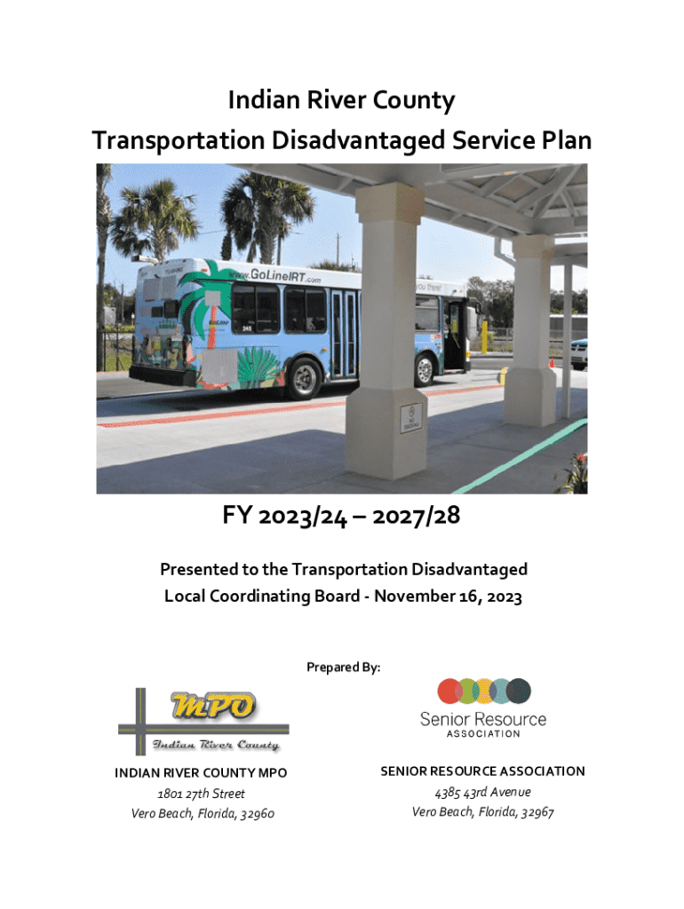 Indian River County Transportation Disadvantaged Service PlanFY 2023/24 2027/28 Presented to the Transportation Disadvantaged Local Coordinating Board November 16, 2023Prepared By:INDIAN RIVER COUNTY