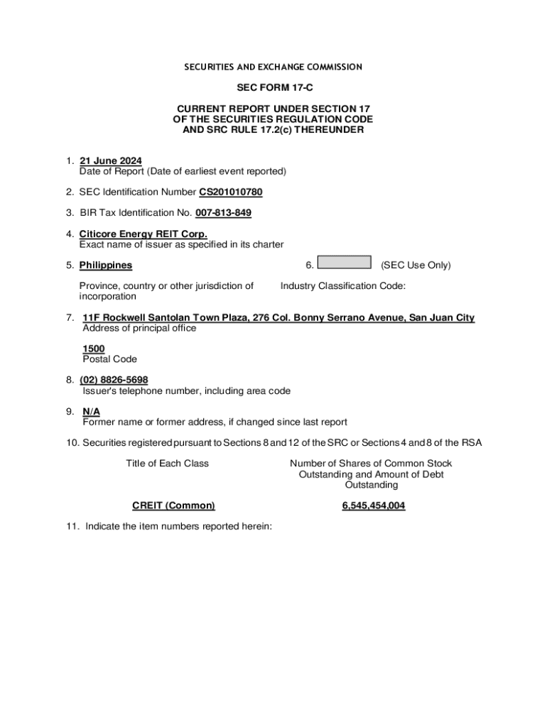 SECURITIES AND EXCHANGE COMMISSION SEC FORM 17C CURRENT REPORT UNDER SECTION 17 OF THE SECURITIES REGULATION CODE AND SRC RULE 17.2(c) THEREUNDER 1. 21 June 2024 Date of Report (Date of the earliest