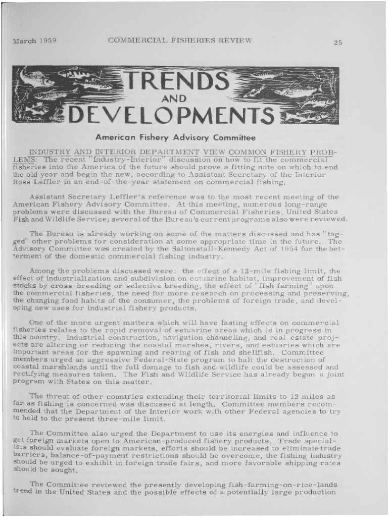March 1959COMMERCIAL FISHERIES REVIEW25ANDEVELOPMENTS American Fishery Advisory Committee INDUSTRY AND INTERIOR DEPARTMENT VIEW COMMON FISHERY PROBLEM MS: The recent \”IndustryInterior\” discussion