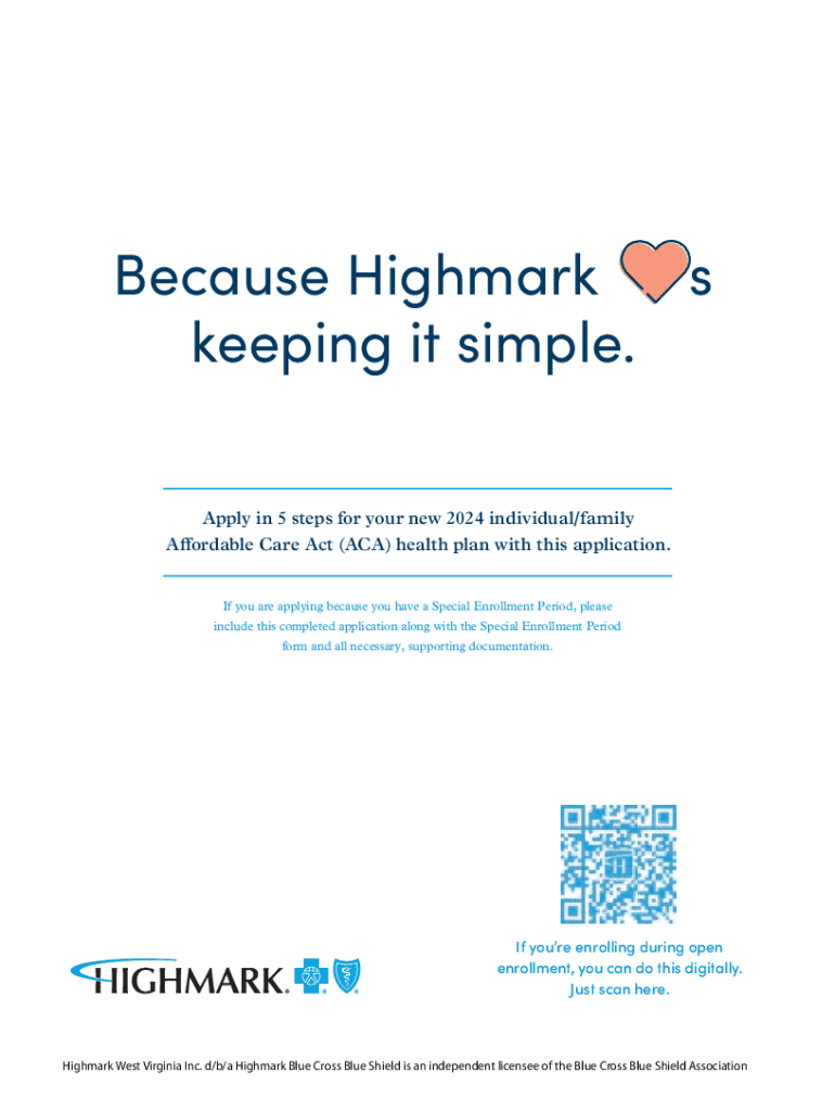 Because High mark s keeping it simple. Apply in 5 steps for your new 2024 individual/family Affordable Care Act (ACA) health plan with this application. If you are applying because you have a Special