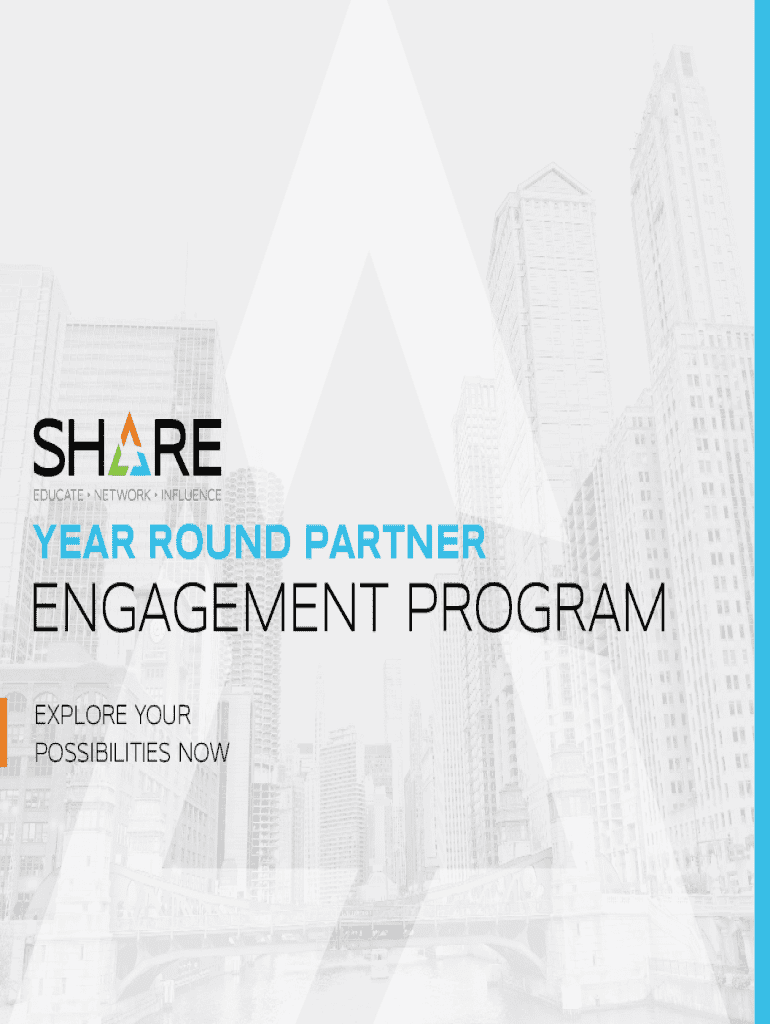 YEAR ROUND PARTNERENGAGEMENT PROGRAM EXPLORE YOUR POSSIBILITIES NOWDISCOVER SHARE: WHY SHARE? Why SHARE? SHARE events bring together the largest convergence of enterprise IT professionals more than