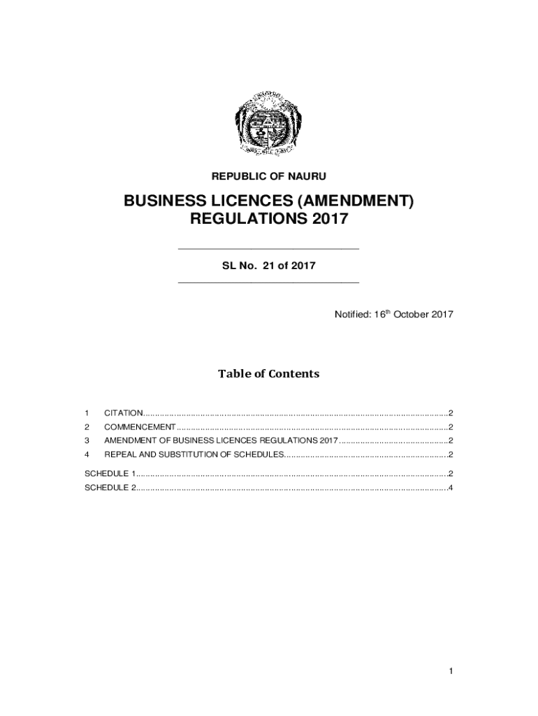 REPUBLIC OF AGRIBUSINESS Licenses (AMENDMENT) REGULATIONS 2017 ___ SL No. 21 of 2017 ___Notified: 16th October 2017Table of Contents 1CITATION ................................................................................................................................22COMMENCEMENT