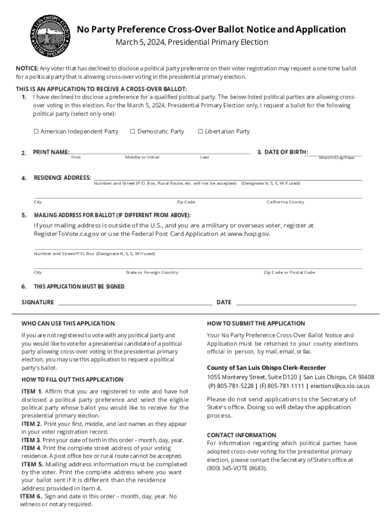 Get the free No Party Preference Crossover Ballot Notice and Application