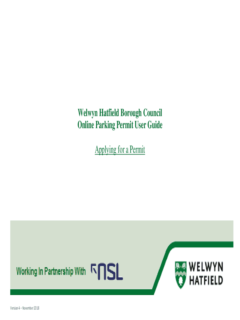 Selwyn Hatfield Borough Council Online Parking Permit User Guide Applying for a Perversion 4 November 2018Online Parking Permit User Guide Page Index To go to the relevant section please click on