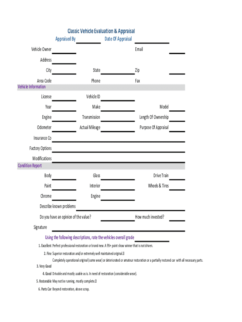 Get the free Classic Vehicle Evaluation & Appraisal