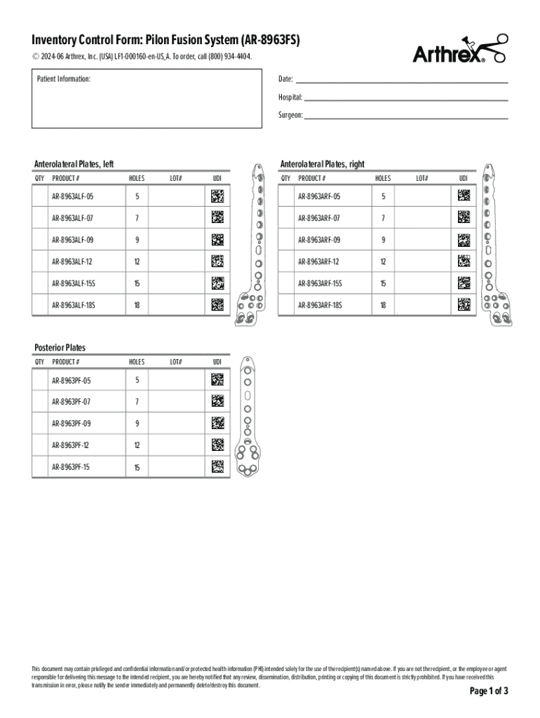 Get the free Inventory Control Form: Pilon Fusion System (AR-8963FS)