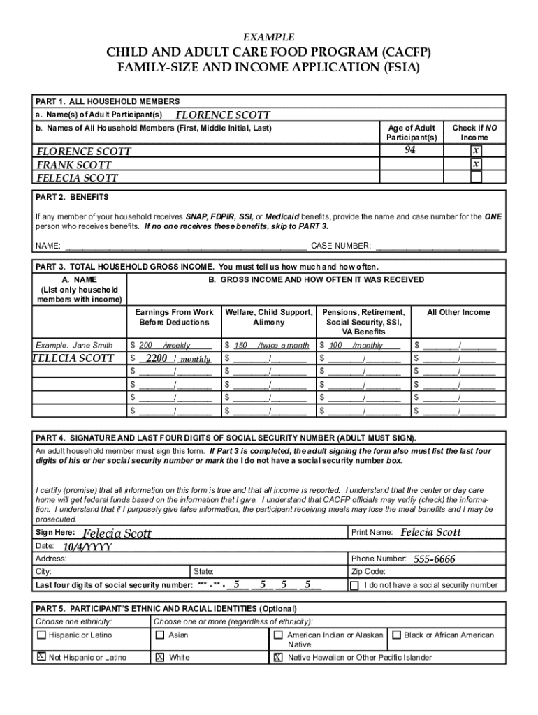 Get the free Sample Household Letter for CACFP Adult Day Care Centers