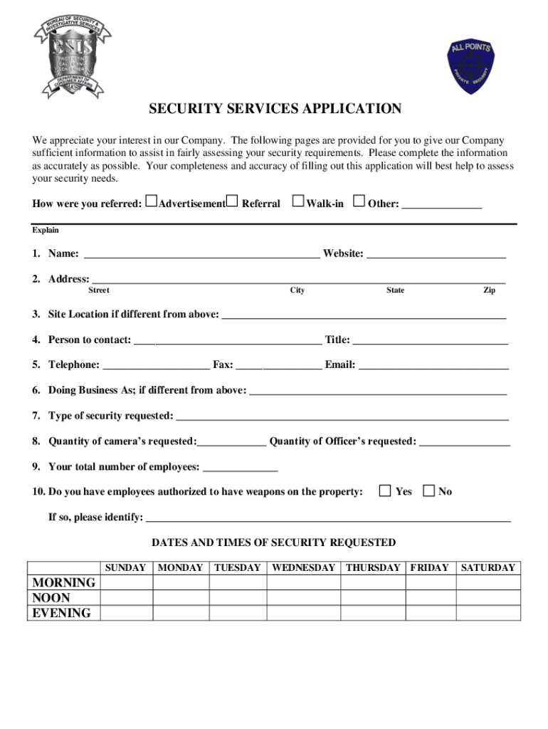 SECURITY SERVICES APPLICATION We appreciate your interest in our Company. The following pages are provided for you to give our Company sufficient information to assist in fairly assessing your security