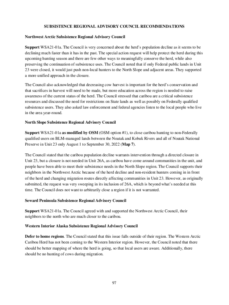 SUBSISTENCE REGIONAL ADVISORY COUNCIL RECOMMENDATIONS