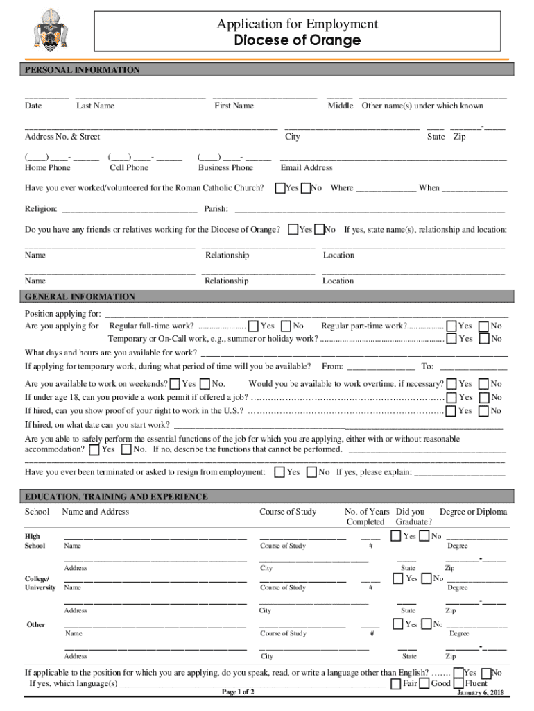 Get the free Application for Employment - Diocese of Orange