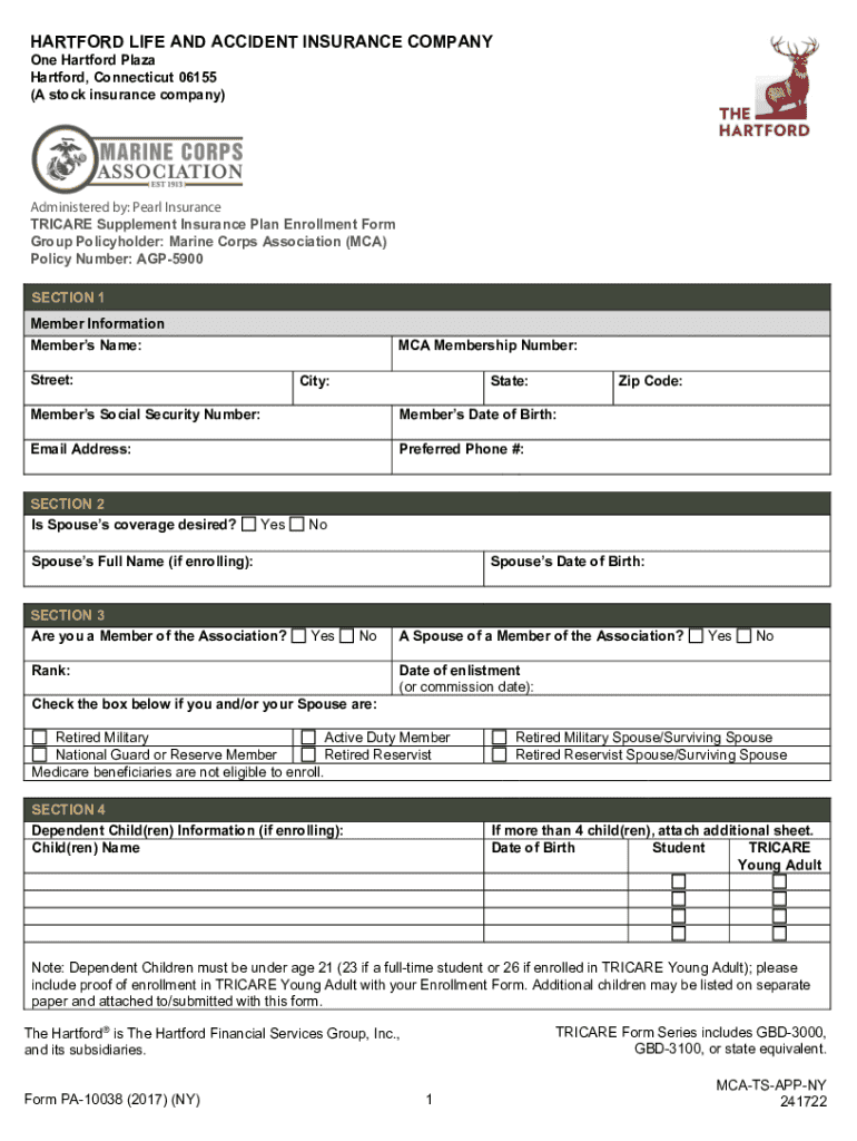 Get the free TRICARE Supplement Insurance Plan Enrollment Form