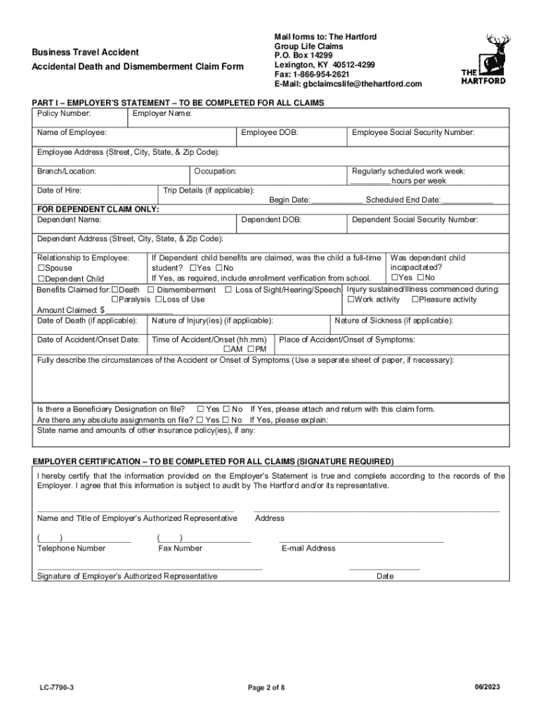 Business Travel Accident Accidental Death and Dismemberment Claim Form IMPORTANT INSTRUCTIONS FOR COMPLETING CLAIM FORM(S) To the Employer and Employee/Beneficiary, as applicable:We know this is a