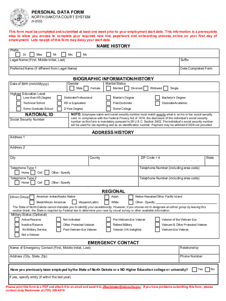 PERSONAL DATA FORSOOTH DAKOTA COURT SYSTEM
