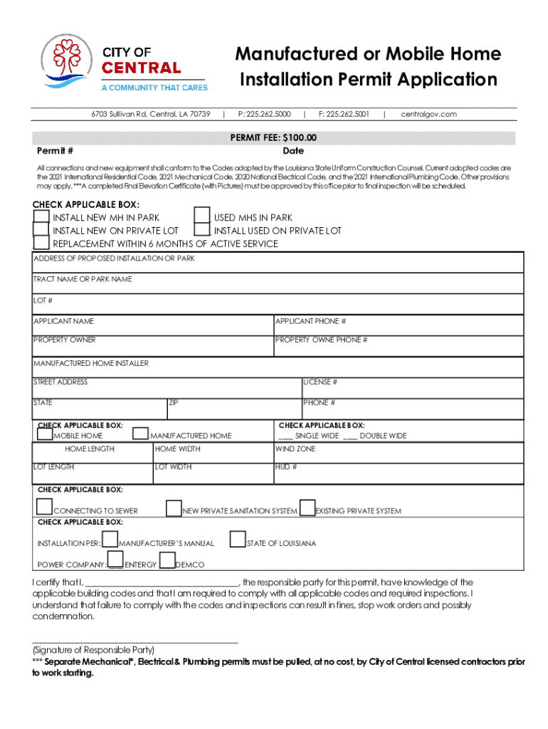 MANUFACTURED / MOBILE HOME GUIDE Last Updated: JUNE 2022 Office Hours: 8:00 a.m. to 4:30 p.m. Monday through Fridays is intended to be a general guide and not an all inclusive list. All forms in this