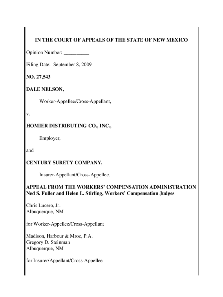 IN THE COURT OF APPEALS OF THE STATE OF NEW MEXICO Opinion Number: ___ Filing Date: September 8, 2009 NO. 27,543 DALE NELSON, WorkerAppellee/CrossAppellant, v. HOMIER DISTRIBUTING CO., INC., Employer,