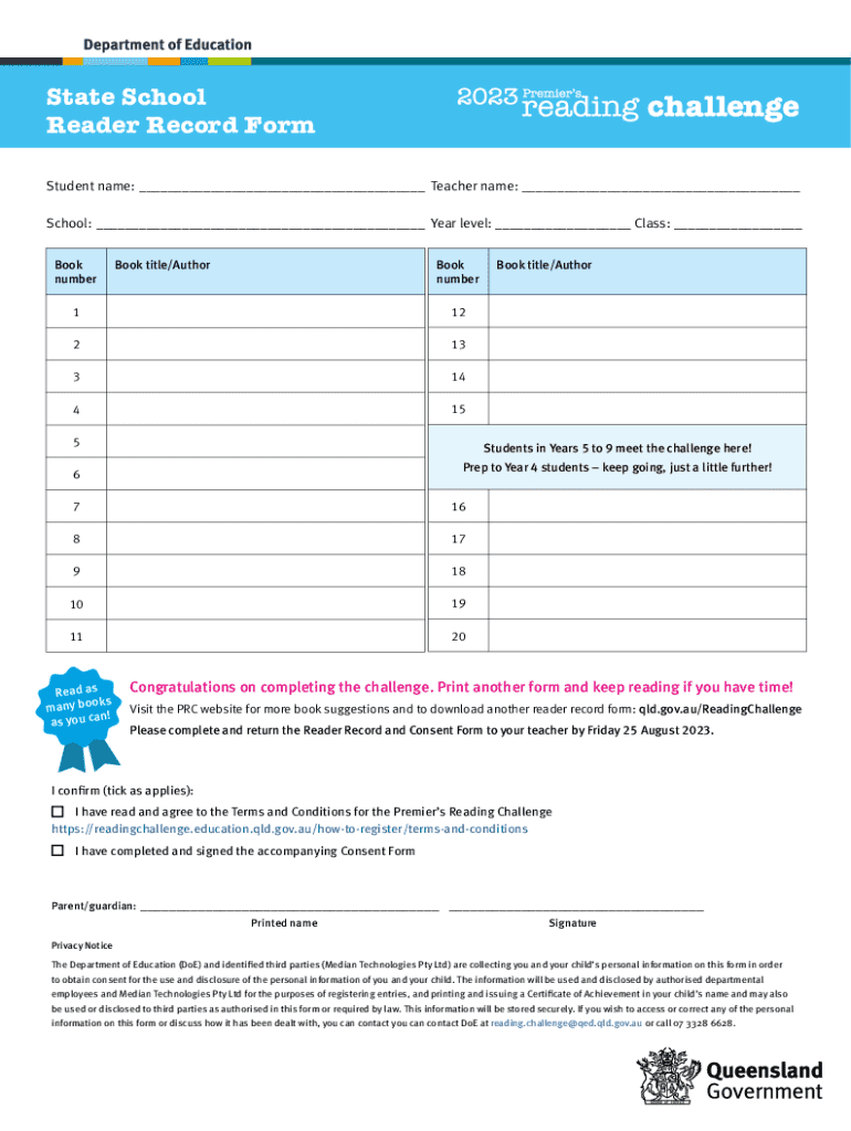 Get the free State school reader record form. State school reader record form