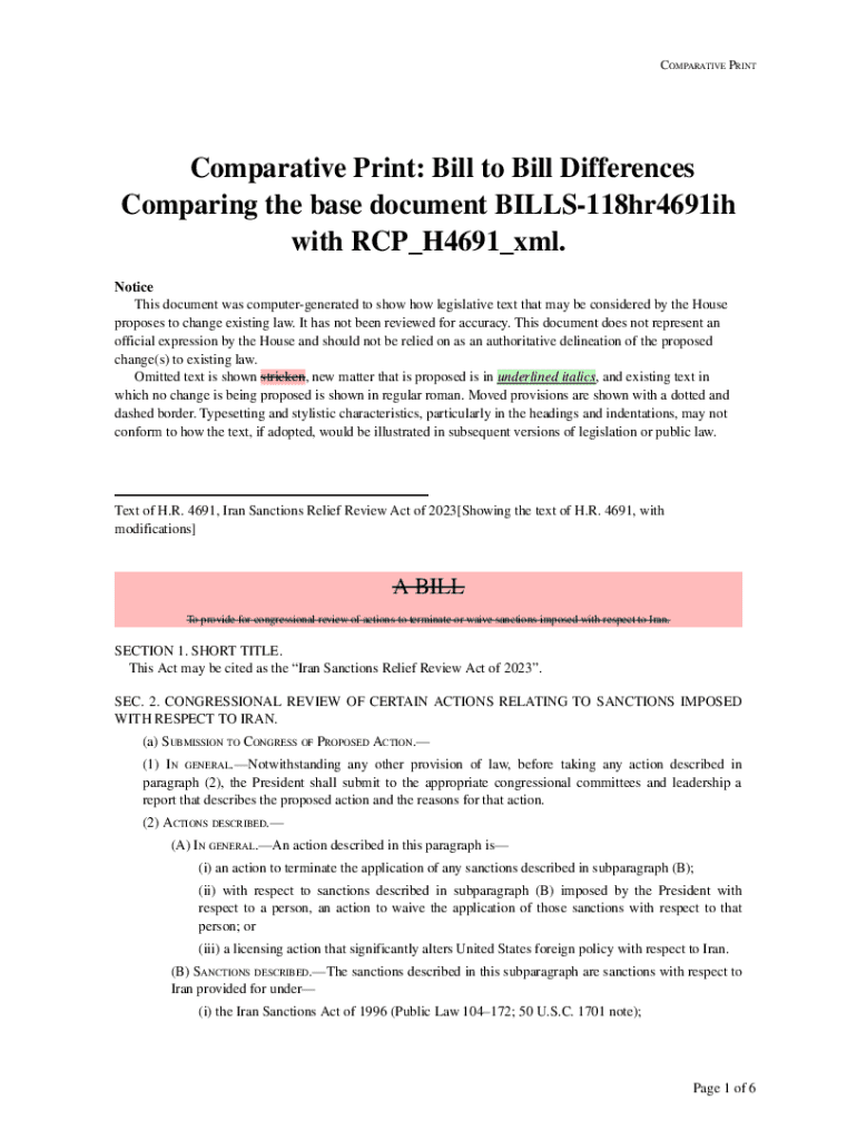 COMPARATIVE PRINTComparative Print: Bill to Bill Differences Comparing the base document BILLS118hr4691ih with RCP_H4691_xml. Notice This document was computergenerated to show how legislative text
