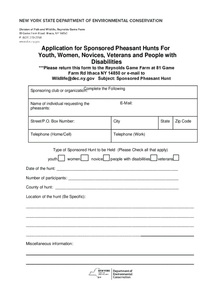 Nysdec Sponsored Pheasant Hunt is not the form you're looking for?Search for another form here.