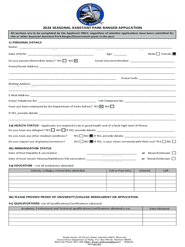 Information required on a National Park Service Seasonal application may include personal details, work experience, availability, and references.