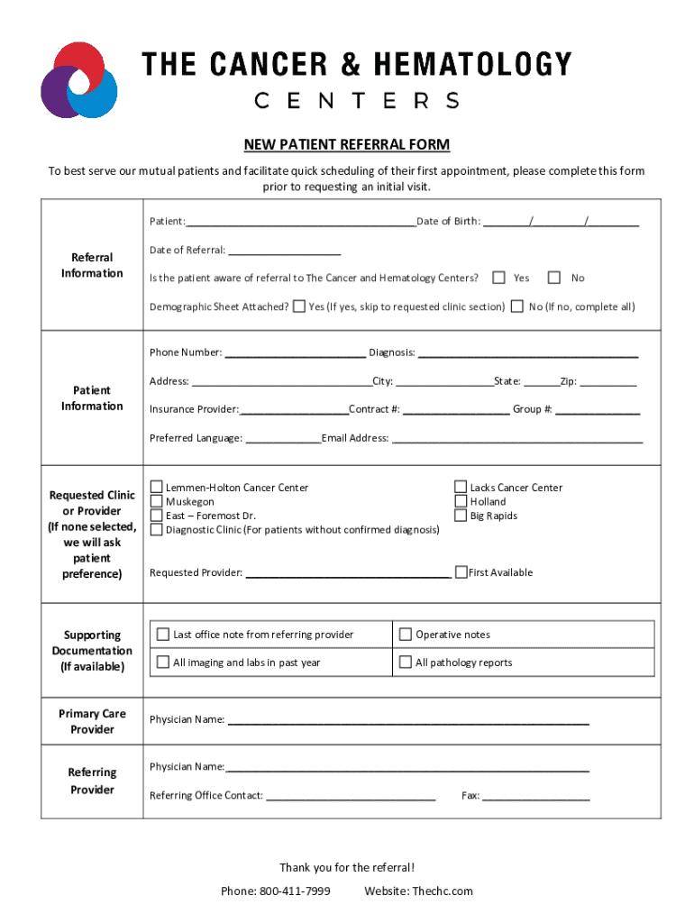 NEW PATIENT REFERRAL FORM To best serve our mutual patients and facilitate quick scheduling of their first appointment, please complete this form prior to requesting an initial visit. Patient: ___