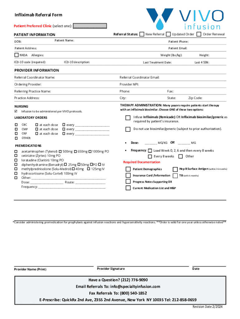Referral Form Patient Preferred Clinic (select one): ___ PATIENT INFORMATIONReferral Status:New ReferralPatient Name:DOB:Order RenewalPatient Phone:Patient Address: NKDAUpdated OrderPatient Email:Allergies:ICD10