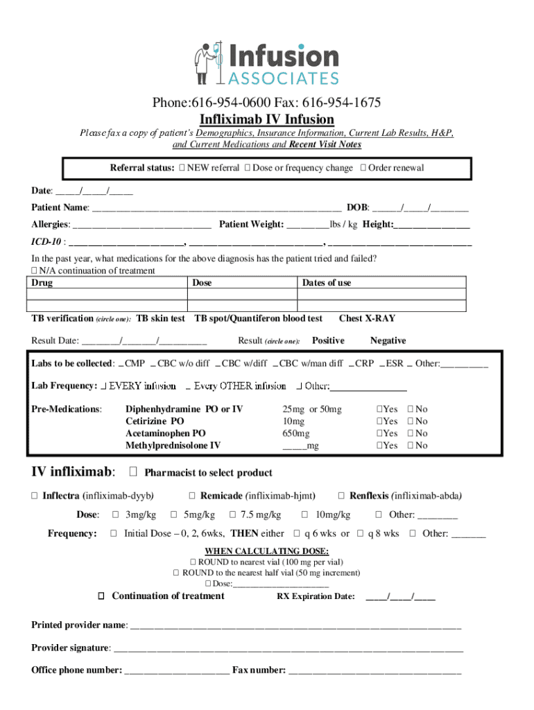 Phone:6169540600 Fax: 6169541675 IV Infusion Please fax a copy of patients Demographics, Insurance Information, Current Lab Results, H&P, and Current Medications and Recent Visit Notes Referral status: