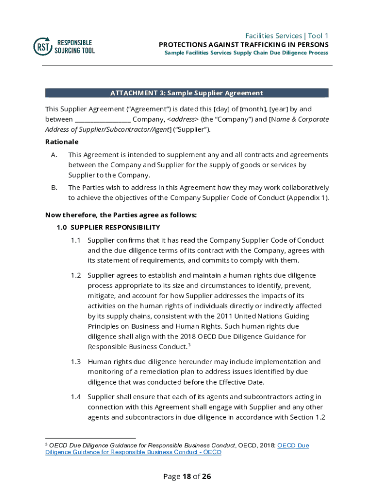 Facilities RESPONSIBLE Services | RSTSOURCING TOOL Tool 1 PROTECTIONS AGAINST TRAFFICKING IN PERSONSSample Facilities Services Supply Chain Due Diligence Process This document provides an overview