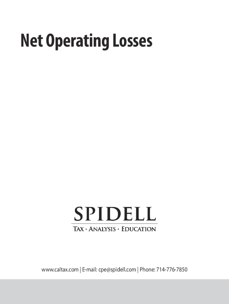 Net Operating Losseswww.caltax.com | Email: cpe@spidell.com | Phone: 7147767850This publication is distributed with the understanding that the authors and publisher are not engaged in rendering legal,