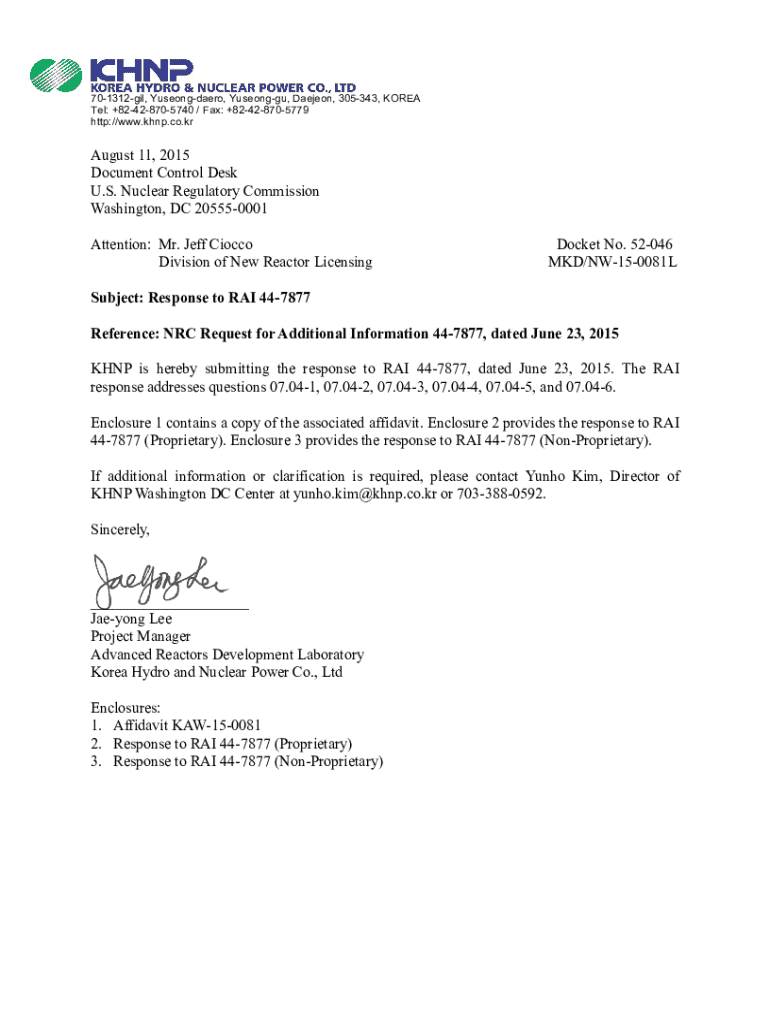 Get the free NRC Request for Additional Information 44-7877, dated June 23, 2015.