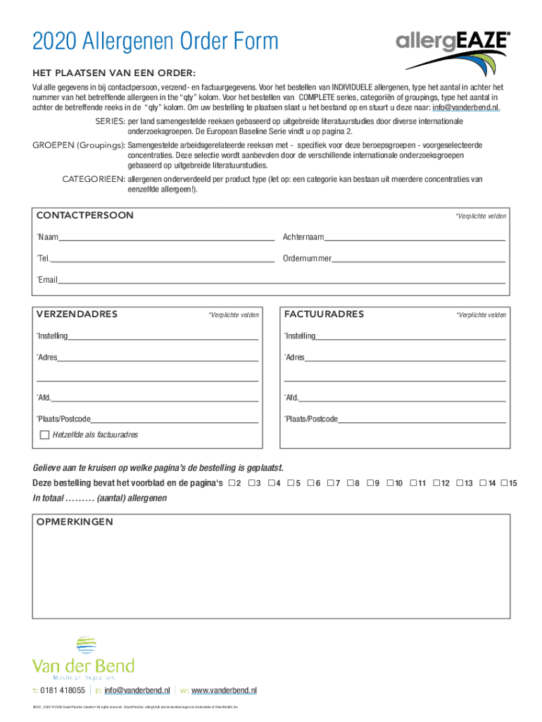 2020 Allergenen Order Form