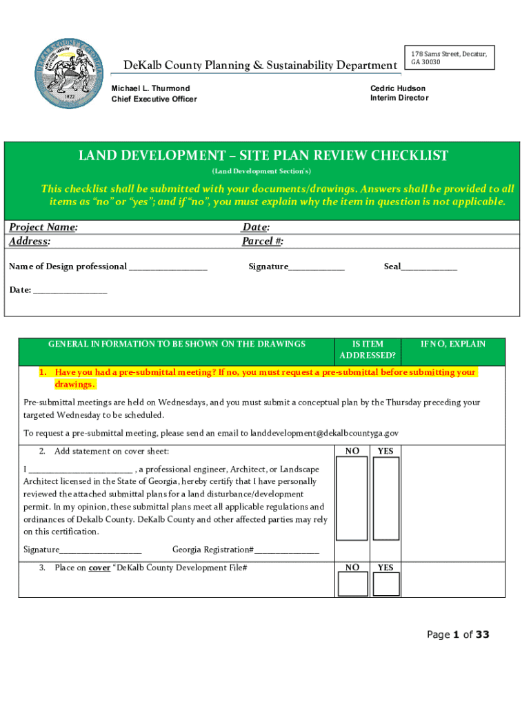 DeKalb County Planning & Sustainability Department Michael L. Thurmond Chief Executive Officer178 Sam's Street, Decatur, GA 30030Cedric Hudson Interim Directorial DEVELOPMENT SITE PLAN REVIEW CHECKLIST