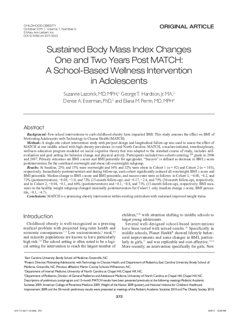 DOI:10.1089/chi.2011.0043Sustained Body Mass Index Changes