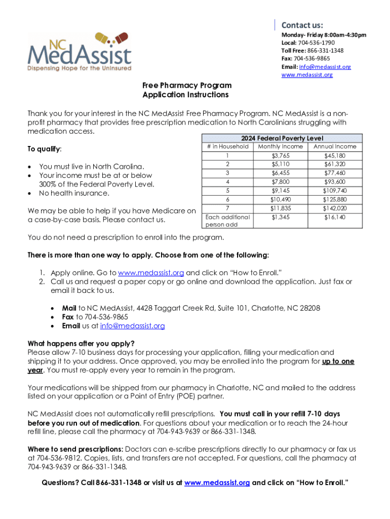 Submit the completed application form either online, by mail, or in person to the NC MedAssist - Charlotte location.