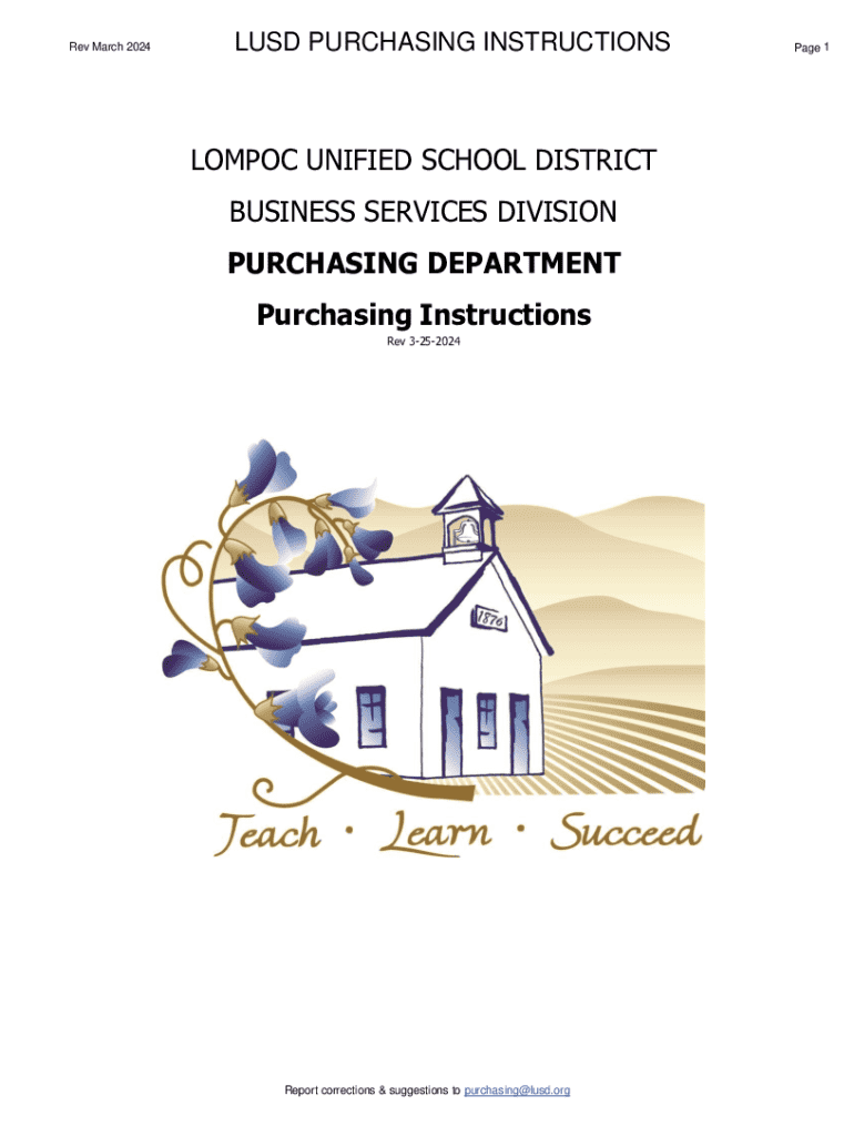 Rev March 2024LUSD PURCHASING INSTRUCTIONSLOMPOC UNIFIED SCHOOL DISTRICT BUSINESS SERVICES DIVISION PURCHASING DEPARTMENT Purchasing Instructions Rev 3252024Report corrections & suggestions to purchasing@lusd.orgPage