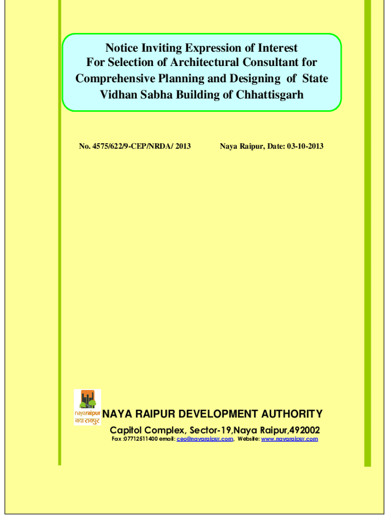 Notice Inviting Expression of Interest For Selection of Architectural Consultant for Comprehensive Planning and Designing of State Vidhan Sabha Building of ChhattisgarhNotice Inviting Expression of