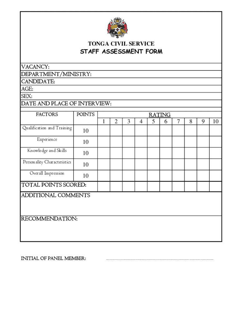 Get the free TONGA CIVIL SERVICE STAFF ASSESSMENT FORM