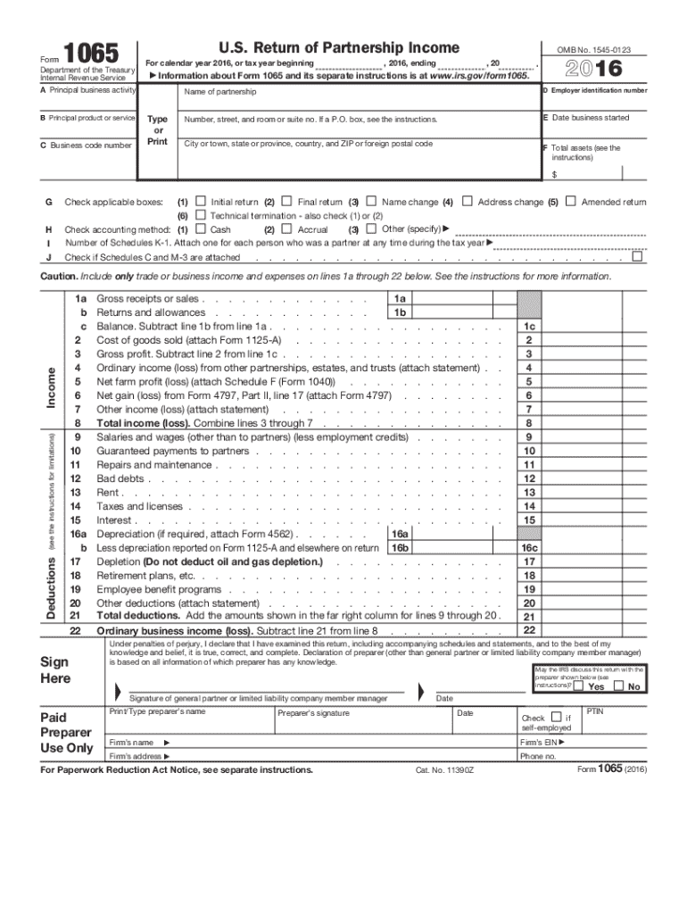 Get the free 2016 Form 1065. U.S. Return of Partnership Income