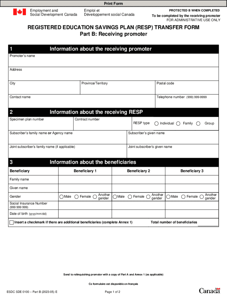 Get the free Resp transfer form sde 0100. ishing RESP is a brother or ...