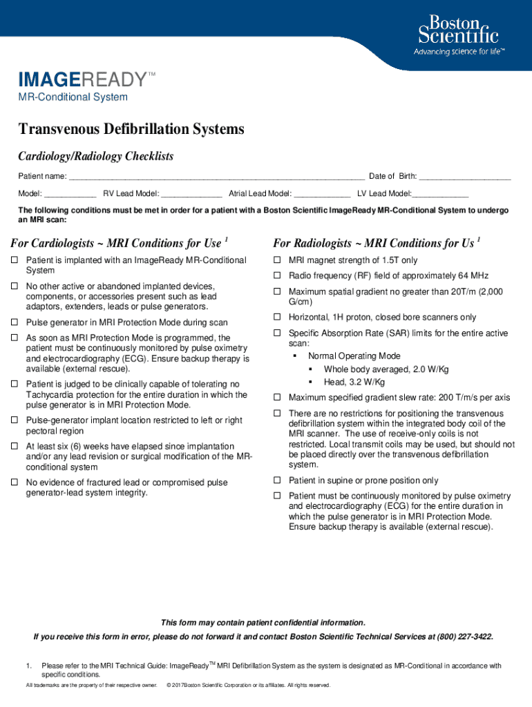 IMAGEREADYTMMRConditional SystemTransvenous Defibrillation Systems