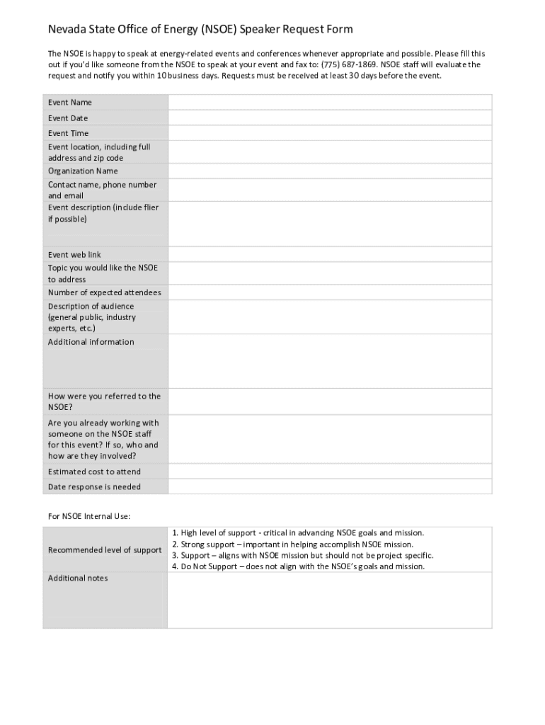 Get the free Nevada State Office of Energy (NSOE) Speaker Request ... - energy nv