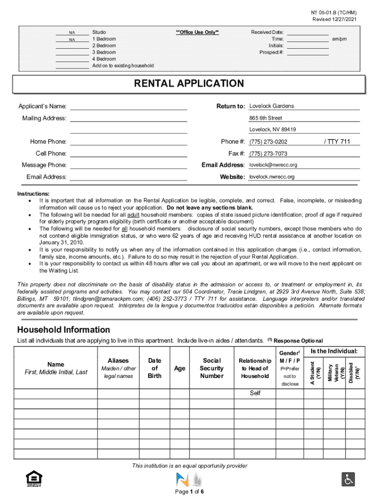 NT 0501.B (TC/HM) Revised 12/27/2021 N/A N/AStudio 1 Bedroom 2 Bedroom 3 Bedroom 4 Bedroom Add on to existing household**Office Use Only**Received Date: Time: Initials: Prospect #:am/pmRENTAL APPLICATION