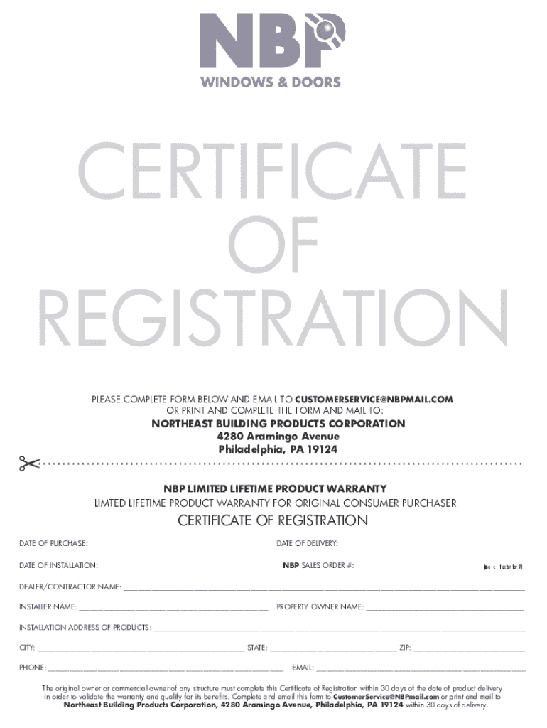 OR PRINT AND COMPLETE THE FORM AND MAIL TO:NORTHEAST BUILDING PRODUCTS CORPORATION