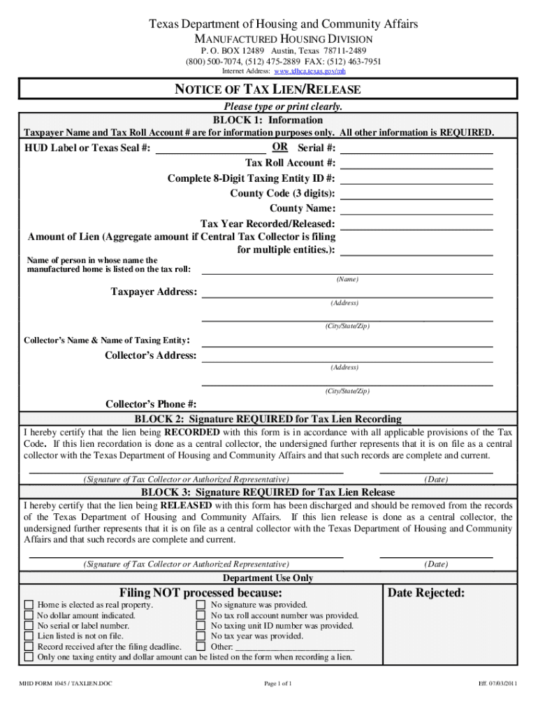 Texas Department of Housing and Community Affairs MANUFACTURED HOUSING DIVISION Clear all form fields. O. BOX 12489 Austin, Texas 787112489 (800) 5007074, (512) 4752889 FAX: (512) 4637951 Internet