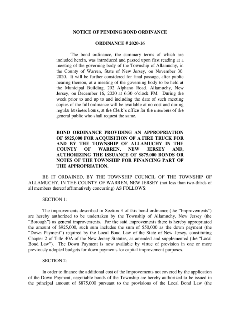 Get the free notice of pending bond ordinance and summary - eCode360