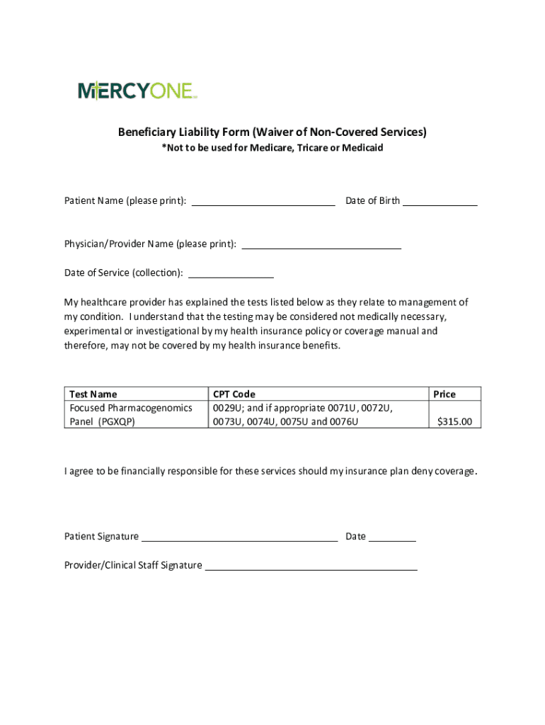 Get the free Beneficiary Liability Form (Waiver of Non-Covered Services)